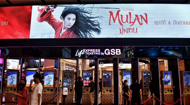 •People buy tickets for Disney’s Mulan film at a cinema inside a shopping mall in Bangkok