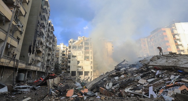 •Destruction at the site of an overnight Israeli airstrike on Beirut on October 1.