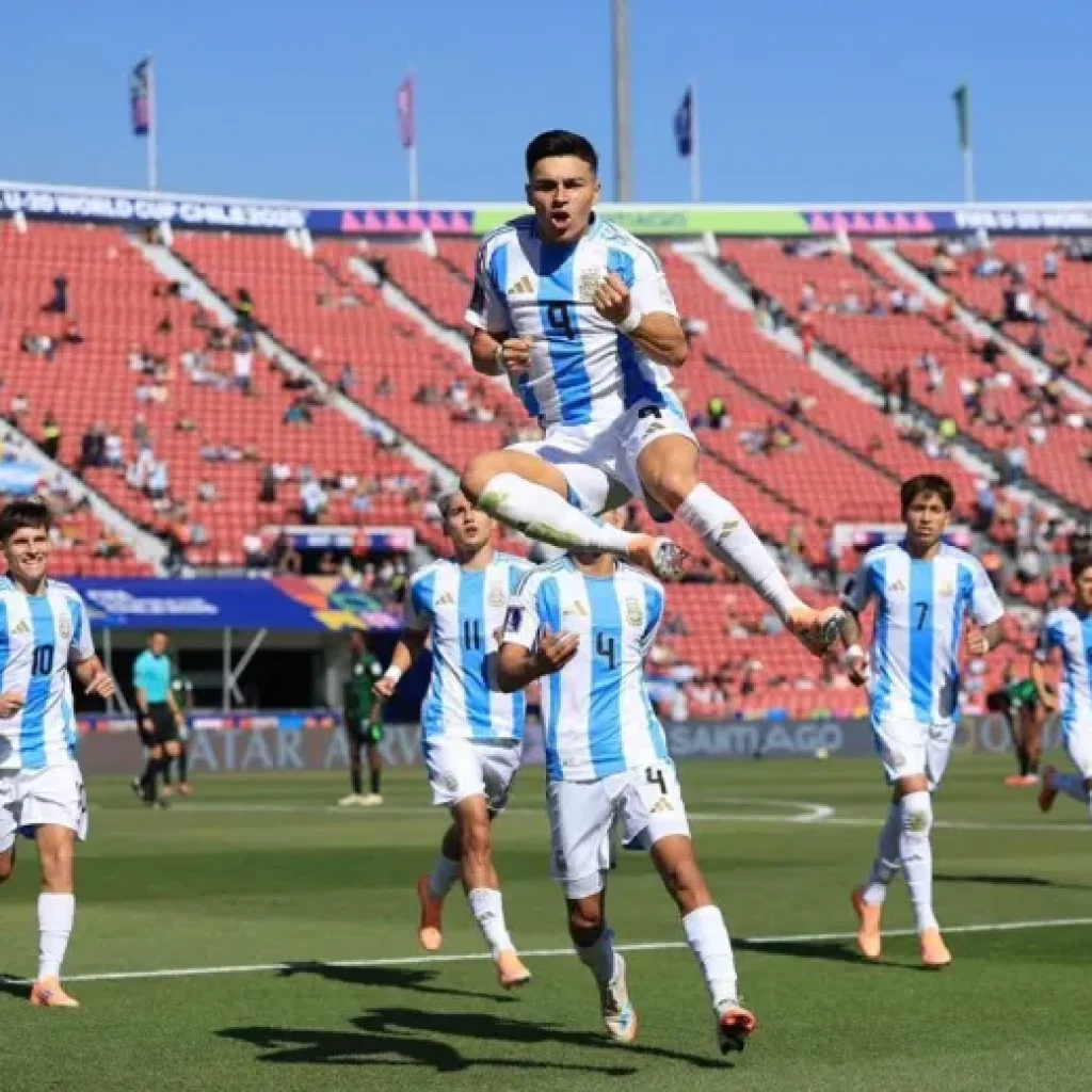 •Argentina celebrates goal against Nigeria Six-time champions Argentina defeated Nigeria 4-0 yesterday to eliminate the Flying Eagles from the 2025 FIFA U-20 World Cup in Chile. The Round of 16 match was played at the Estadio Nacional, Santiago, reports NAN. Argentina’s win avenged their 2-0 loss to Nigeria at the same stage of the 2023 [&hell...