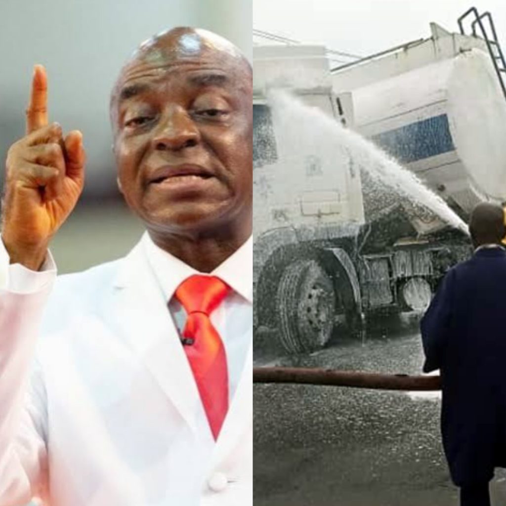 •Bishop Oyedepo and a fallen petrol tanker A fully loaded PMS laden tanker is reported to have fallen on its side at the Winners’ Chapel gate, along Ota-Idiroko Expressway, Ota, sparking panic and concerns from residents and motorists. The report credited to a ‘sitrep’ from the Ogun State Traffic Compliance and Enforcement Agency, states that ...
